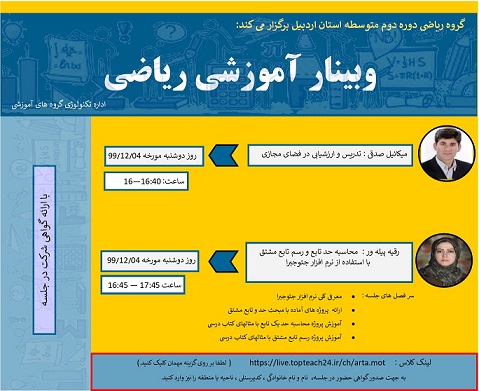 همه فایل های جئوجبرا ارائه شده در وبیناز آموزشی ریاضی با موضوع " محاسبه حد تابع و رسم تابع مشتق با نرم افزار جئوجبرا" برای استفاده همکاران قرار می گیرد.